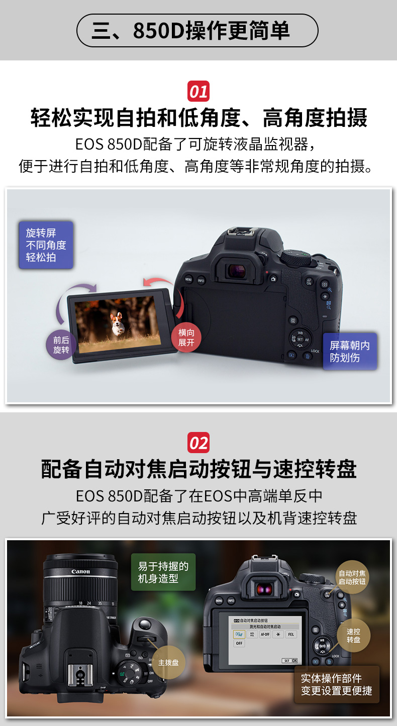 Canon/佳能EOS 850D单反相机入门级18-55套机850d 800D升级相机单反机600d 700d升级版入门级